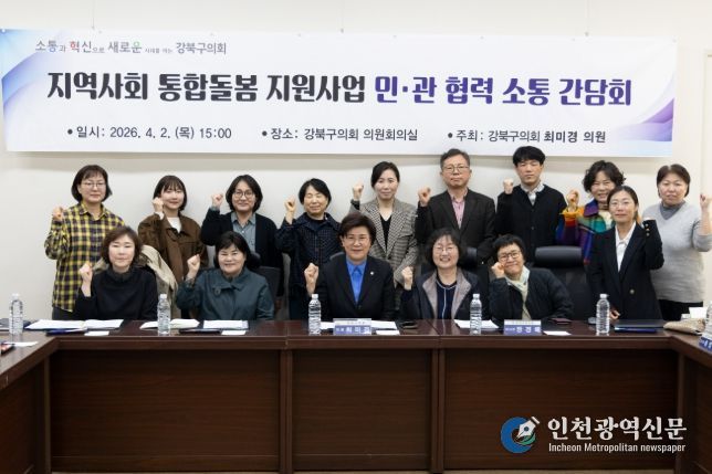 [인천광역신문] 최예준 기자 | 강북구의회 최미경 의원(우이동, 인수동, 수유1동)은 지난 4월 2일, 지역사회 통합돌봄 지원사업의 효율적인 운영과 민·관 협력 체계 강화를 위한 소통 간담회를 개최했다.