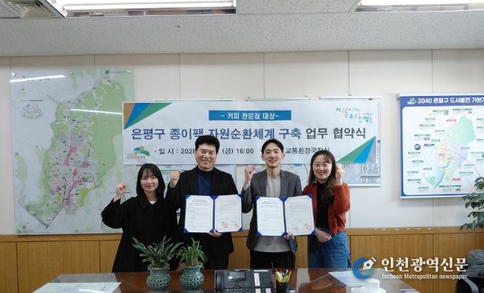 [인천광역신문] 최예준 기자 | 서울 은평구는 지난달 20일 오후 ‘지구를지키는소소한행동 사회적협동조합’과 ‘은평구 카페 자원순환 체계 구축 및 활성화를 위한 업무협약’을 체결했다고 밝혔다.