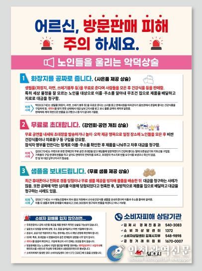 [인천광역신문] 최예준 기자 | 김제시가 최근 고령층을 대상으로 한 방문판매 홍보관(일명 ‘떴다방’) 영업이 확산됨에 따라 소비자 피해 예방을 위한 시민들의 각별한 주의를 당부했다.