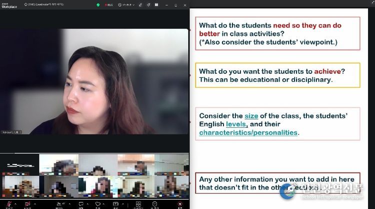 연수는 실시간 온라인 화상 방식으로 운영됐으며, 신규 원어민 영어보조교사가 한국 교육과정과 학교 환경에 대한 이해를 바탕으로 협력수업을 효과적으로 운영할 수 있도록 구성됐다. 또한 다양한 교실 상황과 학생 수준을 반영한 수업 설계 및 적용 방안을 중심으로 실질적인 교수 역량을 강화하는 데 중점을 두었다.