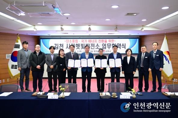 [인천광역신문] 최예준 기자 | 김천시는 4월 2일, 대구지방환경청, 경상북도탄소중립지원센터, (사)누구나햇빛발전과 함께 ‘경북 1호 김천 시민햇빛발전소’건립을 위한 업무협약을 체결했다. 이번 협약은 공공 유휴부지를 활용해 시민이 참여하는 재생에너지 모델을 구축하기 위해 추진됐다.