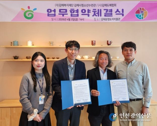[인천광역신문] 최예준 기자 | (재)김해시복지재단 김해시청소년수련관과 (사)김해도예협회는 지난 3일 청소년 진로·문화체험 활성화를 위한업무협약(MOU)을 체결했다.