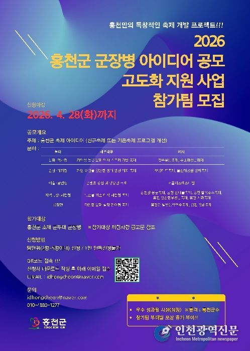 홍천군은 오는 4월 28일까지 2026년 홍천군 군 장병 아이디어 공모를 진행한다.