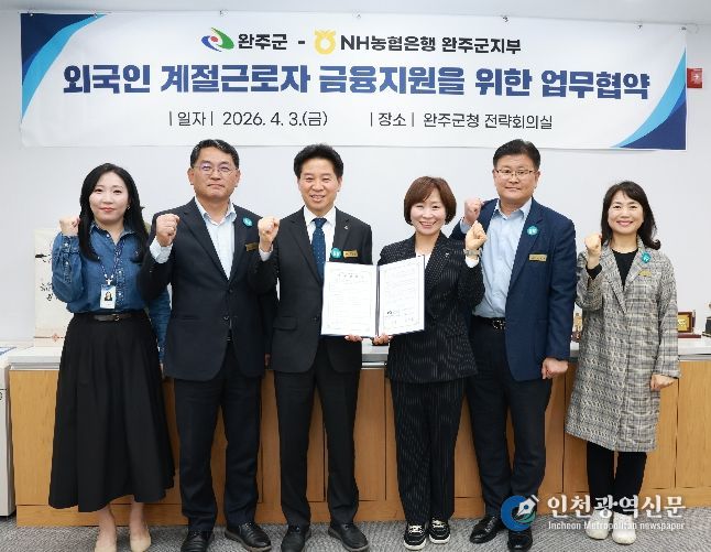 [인천광역신문] 최예준 기자 | 완주군이 외국인 계절근로자들의 원활한 금융 서비스 이용과 안정적인 정착을 돕기 위해 NH농협은행 완주군지부와 긴밀한 협력 체계를 구축했다.