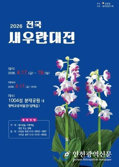 [인천광역신문] 최예준 기자 | 신안군은 대한민국 자생란의 우수성과 가치를 널리 알리기 위해 ‘2026 전국새우란대전’을 오는 4월 17일부터 19일까지 3일간 황해교류박물관 일원(1004섬 분재정원)에서 개최한다.