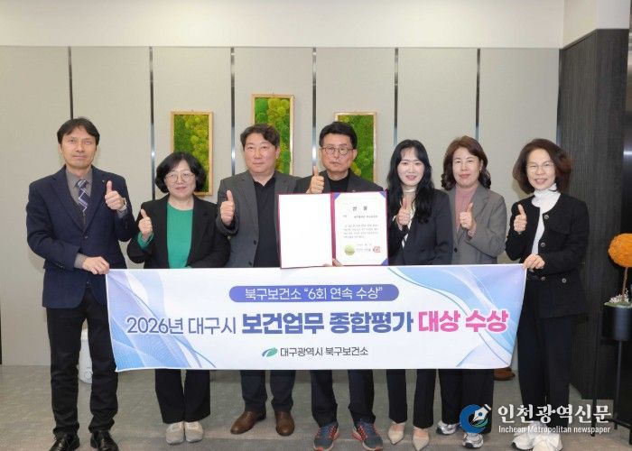 [인천광역신문] 최예준 기자 | 대구 북구보건소가 대구광역시 주관 ‘2026년 보건업무 종합평가(’25년 실적)’에서 대상을 수상하며, 6년 연속 우수기관 선정이라는 대기록을 달성했다.