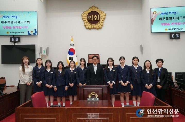 [인천광역신문] 최예준 기자 | 제주특별자치도의회는 4월 7일 오후 3시, 본회의장에서 제주여자중학교 학생자치회 학생들과 함께 청소년의회 의정체험을 추진했다.