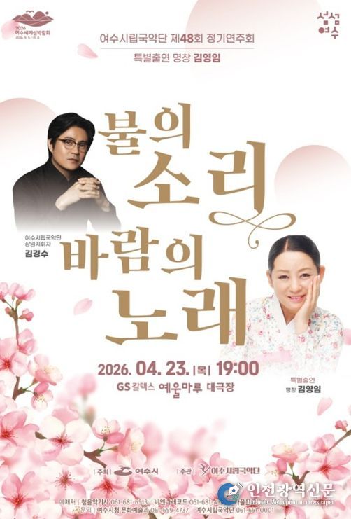 [인천광역신문] 최예준 기자 | 여수시립국악단(상임지휘자 김경수)은 오는 4월 23일 GS칼텍스 예울마루 대극장에서 제48회 정기연주회 ‘불의 소리, 바람의 노래’를 개최한다.