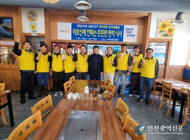 [인천광역신문] 최예준 기자 | 여수한려로타리클럽(회장 박정령)은 지난 7일 여수시 문수동에 위치한 ‘수미네 게장백반’에서 지역 어르신들을 위한 따뜻한 점심 나눔 봉사활동을 실시했다.