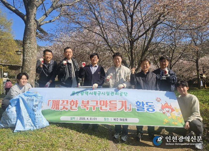 [인천광역신문] 최예준 기자 | 울산광역시 북구 시설관리공단(이사장 임정식)은 4월 8일 북구 관내 화동못 일원 및 공단 시설 외곽 등에서 '깨끗한 북구만들기' 활동을 전개했다. 이번 환경 정화 활동에는 관리직 임직원 9명이 직접 참여했다.