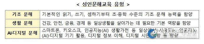 성인 문해교육 지원사업은 배움의 기회를 놓친 어르신 등에게 읽기·쓰기·셈하기 등 기초 문해 역량부터 건강, 안전, 금융 등 일상생활에 필요한 역량, 나아가 인공지능(AI)·디지털 활용 역량까지 함양할 수 있도록 지원하는 사업이다.