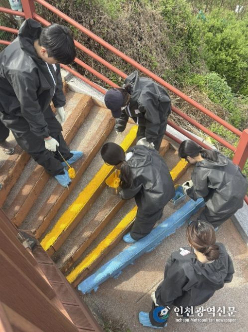 참여자들은 계단 주변의 이물질을 제거하고 밝은 색상으로 도색 작업을 진행해 어둡고 낡았던 골목 분위기를 한층 밝고 쾌적하게 개선했다. 특히 처음 봉사활동에 참여한 청년들도 적극적으로 작업에 참여하며 현장에 활기를 더했다.