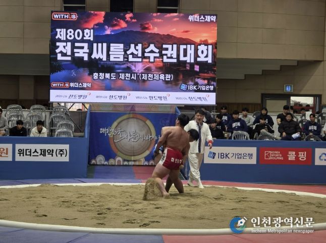 [인천광역신문] 최예준 기자 | 대한씨름협회가 주최하고 제천시와 제천시체육회가 후원한 제80회 전국씨름선수권대회가 전문선수 120개 팀, 1,075명이 참가한 가운데 제천체육관에서 성황리에 마무리됐다.