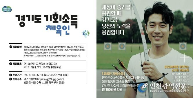 [인천광역신문] 최예준 기자 | 하남시가 체육활동의 사회적 가치를 인정하고 체육인의 안정적인 활동을 지원하기 위한 ‘2026년 체육인 기회소득’ 사업을 본격 추진한다.