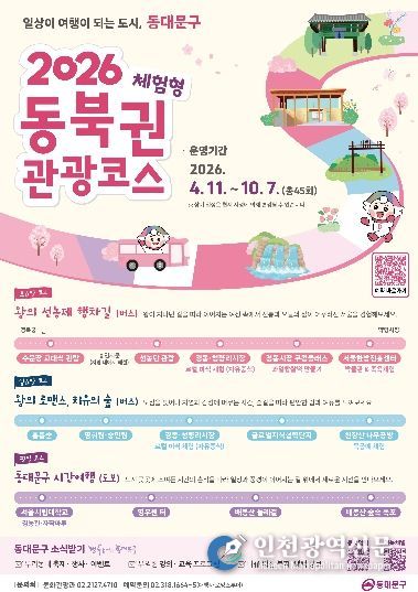 [인천광역신문] 최예준 기자 | 서울 동대문구는 지역의 역사·문화·체험 자원을 연계한 ‘2026 동대문구 동북권 체험형 관광 코스’를 4월 11일부터 10월 7일까지 운영한다고 밝혔다.