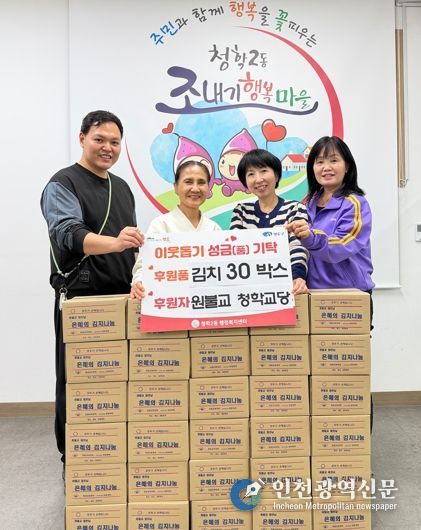 [인천광역신문] 최예준 기자 | 영도구 청학2동 소재 원불교 청학교당은 지난 4월 9일, 원불교 열린 날인 ‘대각개교절’을 기념하여 저소득 가정을 위한 김치 30박스를 청학2동 행정복지센터에 기탁했다.