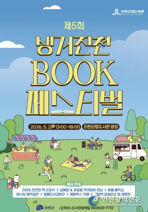 [인천광역신문] 최예준 기자 | 충북 진천군은 오는 5월 2일 토요일 오후 1시, 진천군립도서관 광장에서 ‘제5회 생거진천 북 페스티벌 및 2026 진천의 책 선포식’을 개최한다고 밝혔다.