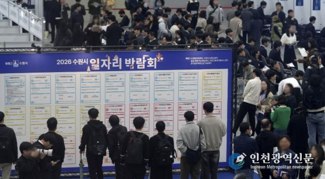 [인천광역신문] 최예준 기자 | 수원특례시가 9일 수원컨벤션센터 전시홀에서 개최한 ‘2026 수원시 일자리박람회’에 2028명이 찾았다.