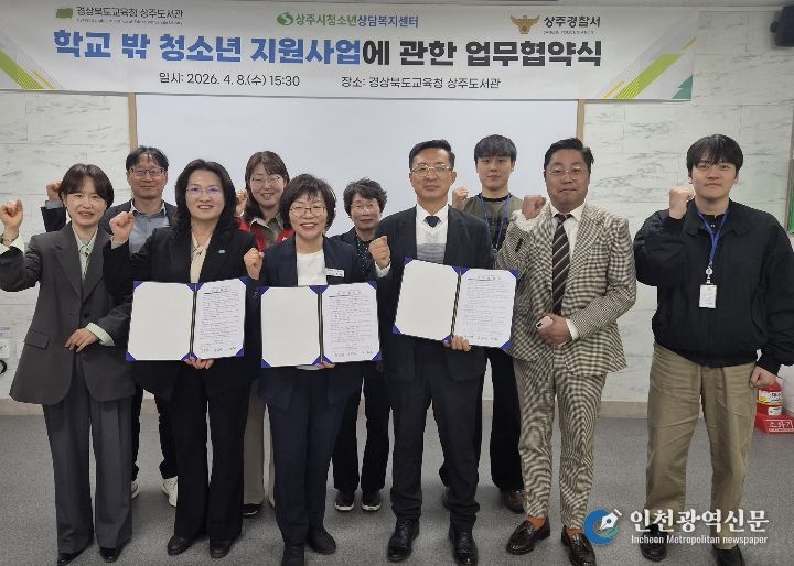 [인천광역신문] 최예준 기자 | 학교 밖 청소년의 사회 적응과 자립지원, 그리고 교육·문화 활동 기회를 확대하기 위해 지난 8일 상주시학교밖청소년지원센터, 경상북도교육청 상주도서관, 상주경찰서 3개 기관이 업무협약(MOU)을 체결했다.