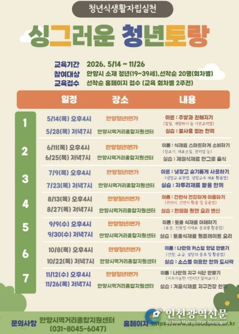 [인천광역신문] 최예준 기자 | 안양시는 시민들의 건강하고 안전한 먹거리 환경조성을 위해 기존 기관 위탁 방식이었던‘안양시 먹거리종합지원센터’를 시 직영체제로 전환하고, 시민의 식생활 교육 전담 기관의 기능을 본격적으로 강화한다고 10일 밝혔다.