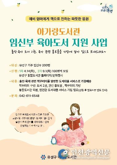 지원 대상은 유성구에 거주하는 임신부 100명으로, 선정된 대상자에게는 태교·육아 관련 도서 2권과 가방, 출산·육아 관련 홍보물로 구성된 책꾸러미를 제공한다.