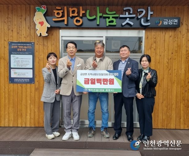 [인천광역신문] 최예준 기자 | 금산군에 소재한 ㈜명지건설(대표 최명식)은 지난 9일 금산군 금성면지역사회보장협의체에 100만 원을 기탁했다.