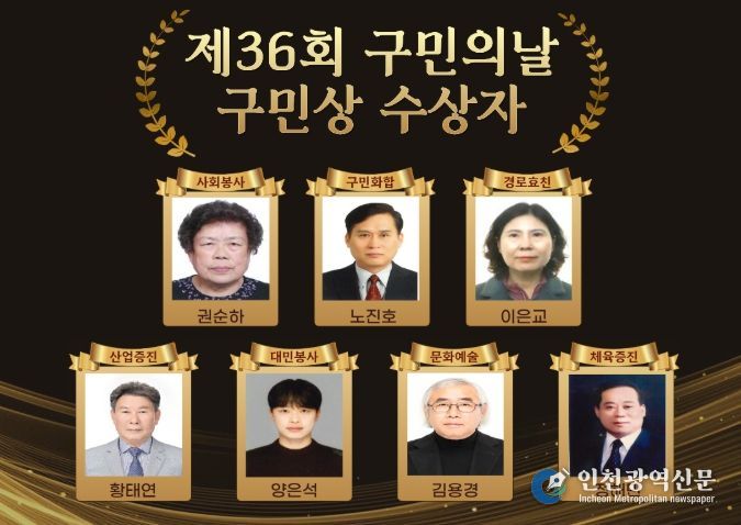 [인천광역신문] 최예준 기자 | 인천 미추홀구는 제36회 구민의 날(5월 1일)을 맞아 ‘구민상’ 수상자 7명을 선정했다고 밝혔다.