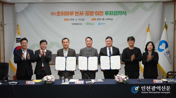 [인천광역신문] 최예준 기자 | 춘천시와 강원특별자치도, ㈜쏘이마루가 10일 강원도청 본청에서 3자 투자협약식을 개최했다.