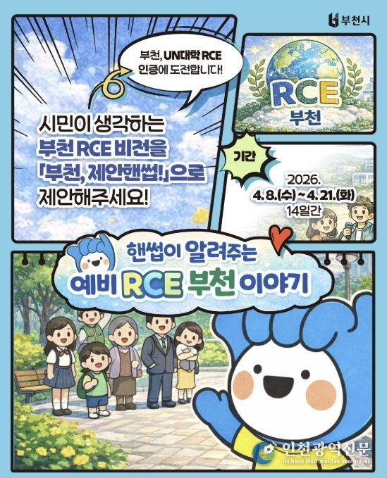 [인천광역신문] 최예준 기자 | 부천시는 4월 21일까지 온라인 시민 정책제안 플랫폼 ‘부천, 제안핸썹’을 통해 ‘부천 RCE 비전 시민 제안 공모’를 추진한다.
