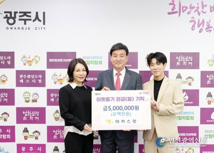 [인천광역신문] 최예준 기자 | 광주시 홍보대사 마커스강(본명 강원휘)은 10일 광주시청을 방문해 지역 내 어려운 이웃을 돕기 위한 성금 500만 원을 기탁했다.