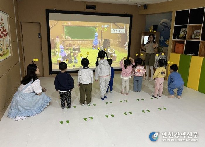 도서관 1층 체험형 동화구연실에서는 매 회차마다 동화 속 세상이 펼쳐지고, 아이들은 이야기를 ‘듣는 사람’이 아닌 ‘주인공’이 되어 그 안으로 들어간다. 대형 스크린에 구현된 생생한 장면 속에서 아이들은 몸을 움직이며 이야기의 흐름을 따라가고, 친구들과 함께 역할을 나누며 자연스럽게 이야기를 완성해 나간다.