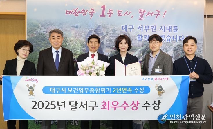 [인천광역신문] 최예준 기자 | 대구 달서구는 대구시가 주관한'2025년 보건업무종합평가'에서 달서구보건소가 최우수상을 수상했다고 12일 밝혔다.