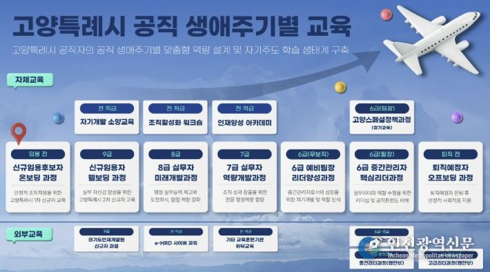[인천광역신문] 최예준 기자 | 고양특례시는 급변하는 행정환경과 다양해진 정책 수요에 대응하기 위해 사람·직무·AI를 아우르는 ‘고양형 공직자 성장로드맵’을 구축하고 체계적 교육과정 운영에 나선다.
