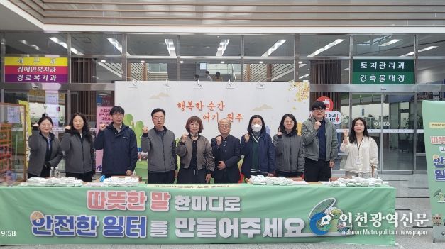 [인천광역신문] 최예준 기자 | 원주시는 지난 9일 시청 로비에서 안전보건공단 강원지역본부, 고용노동부 원주지청과 함께 ‘고객응대근로자 보호 합동 캠페인’을 전개했다.