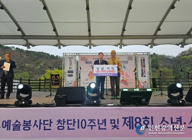 [인천광역신문] 최예준 기자 | 진주예술봉사단(단장 최점섭)은 지난 11일, 평거야외무대에서 시민과 함께하는 ‘소년소녀가장돕기 음악회’행사를 개최하고 어려운 이웃돕기 성금 100만 원을 진주시복지재단에 기탁했다.