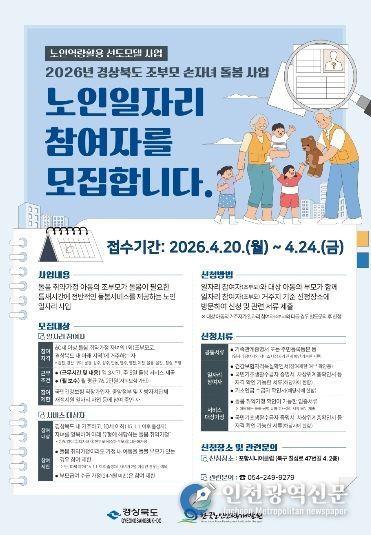 [인천광역신문] 최예준 기자 | 포항시가 맞벌이 가정의 양육 부담을 덜고 어르신의 사회참여를 확대하기 위한 ‘조부모 손자녀 돌봄 사업’을 추진한다.
