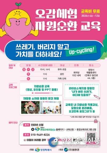 [인천광역신문] 최예준 기자 | 창원특례시는 기후위기 시대 자원순환의 중요성을 알리고 일상 속 제로웨이스트 실천을 돕기 위해 오는 4월 15일부터 12월 31일까지 유아부터 성인까지 전 연령을 대상으로 ‘오감체험 자원순환 환경교육’을 운영한다고 밝혔다.