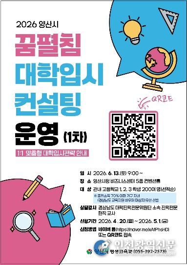 [인천광역신문] 최예준 기자 | 양산시가 대입을 준비하는 학생들을 위하여 꿈펼침 대학입시컨설팅 사업을 추진한다.