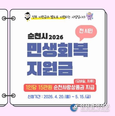 [인천광역신문] 최예준 기자 | 순천시는 시의회 의결을 거쳐 정부 고유가 피해지원금과는 별도로, 소득 수준과 관계없이 상위 30%를 포함한 전 시민에게 1인당 15만원의 민생회복지원금을 지급한다.