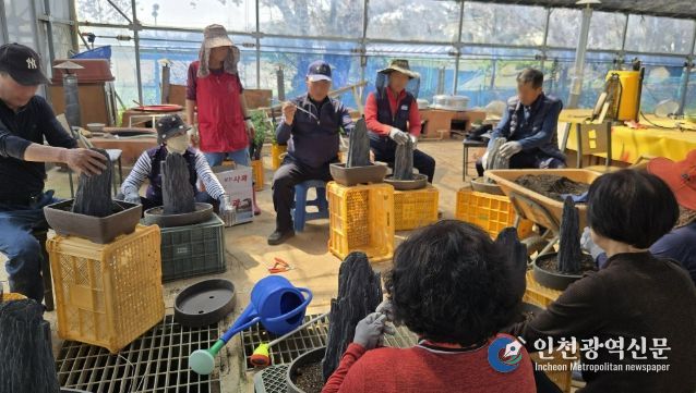 한흥동 전(前) 충남관상국화연구회장이 강사를 맡았으며, 지난 13일 국화석부작 품종별 특성, 작품 소재 준비 등을 주제로 첫 교육이 진행됐다.