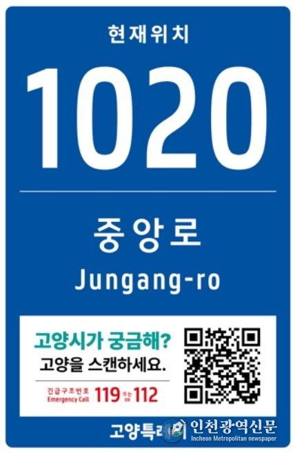 [인천광역신문] 최예준 기자 | 고양특례시는 축제 및 공연장 인근에 ‘QR코드를 탑재한 스마트 기초번호판’ 238개소를 설치했다고 14일 밝혔다.
