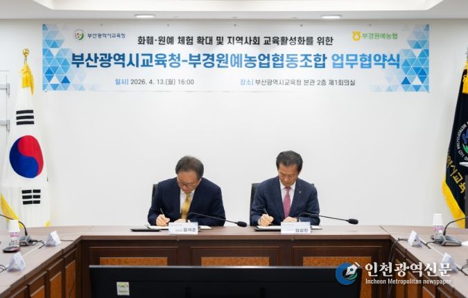 [인천광역신문] 최예준 기자 | 부산광역시교육청은 지난 13일 시교육청 제1회의실에서 부경원예농업협동조합(조합장 최성환)과 ‘지역사회 교육활성화를 위한 원예체험 프로그램 운영’ 업무 협약을 체결했다고 밝혔다.