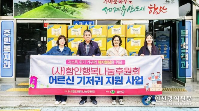 [인천광역신문] 최예준 기자 | 함안군은 (사)함안행복나눔후원회(회장 곽필구)가 지역 내 취약계층 어르신들을 위해 기저귀를 기탁하며 따뜻한 나눔을 실천했다고 지난 14일 밝혔다.