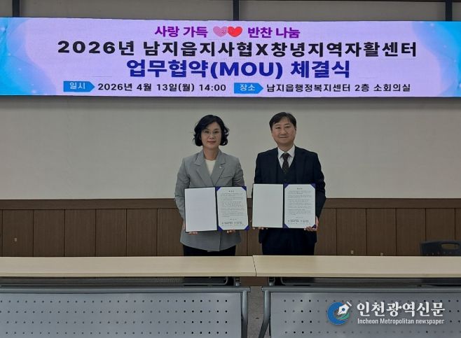 [인천광역신문] 최예준 기자 | 창녕군 남지읍 지역사회보장협의체(공공위원장 김선경)는 지난 13일 창녕지역자활센터와 ‘사랑가득 반찬나눔’ 사업 추진을 위한 업무협약(MOU)을 체결했다.
