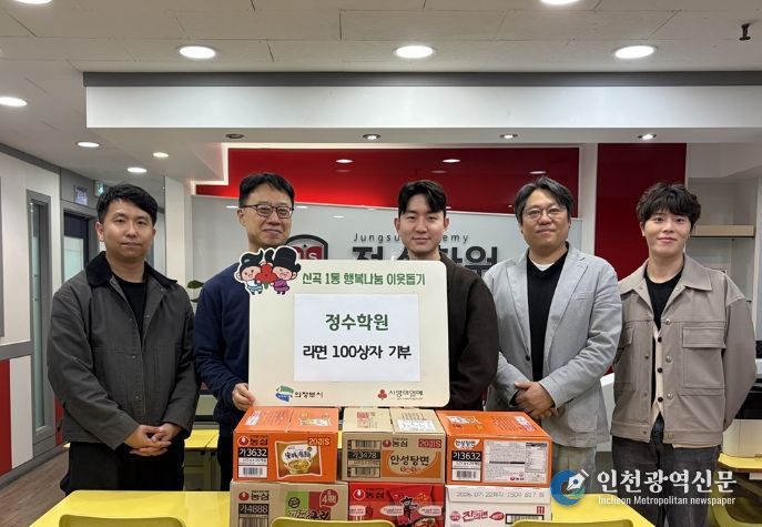 정수학원은 신곡1동과 복지자원 나눔 협약을 맺고 지난 5년간 기부활동을 이어왔다. 방학마다 ‘라면 특강’을 운영해 수강생들이 라면을 기부하는 참여형 나눔을 실천해 왔다.