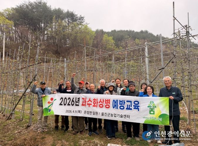 [인천광역신문] 최예준 기자 | 울진군은 과수화상병의 사전 예방과 확산 방지를 위해 온정면 외선미리 선도농가에서 사과·배 재배농가 15명을 대상으로 4월 9일 과수화상병 예방교육을 실시했다.