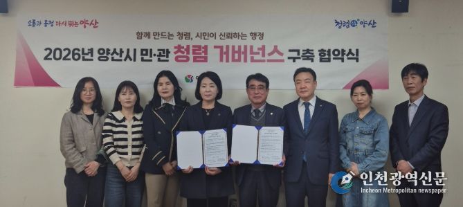 [인천광역신문] 최예준 기자 | 양산시 보건소는 지난 13일 신뢰받는 행정을 구현하고 청렴 시책의 실효성을 높이기 위해 (사)한국외식업중앙회 양산시지부와 청렴 거버넌스 협약식을 체결했다.