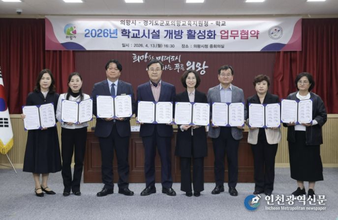 [인천광역신문] 최예준 기자 | 군포의왕교육지원청은 4월 13일 의왕시 및 관내 학교(8개교)와 학교시설 개방 활성화를 위한 업무협약(MOU)을 체결했다.