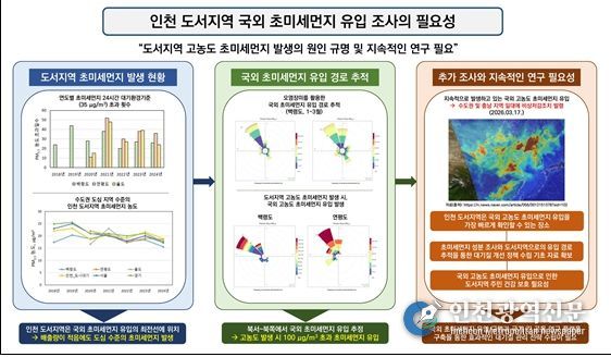 인천연구원 박현영 부연구위원은 “인천 도서지역은 국외 초미세먼지 유입 특성을 파악할 수 있는 중요한 관측 거점”이라며, “이 지역 연구는 도서지역을 넘어 인천 전체의 미세먼지 관리 정책 수립에 활용될 수 있다”고 밝혔다.