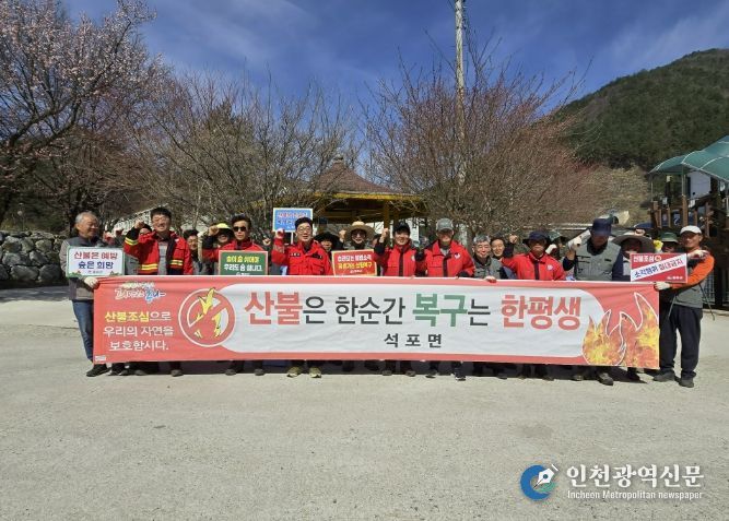 [인천광역신문] 최예준 기자 | 석포면은 14일 태백산국립공원 입구에 위치한 대현리 열목어마을에서 면사무소 직원을 포함한 마을주민 30여명이 참여해 산불예방 캠페인 및 주변 환경정비를 실시했다.
